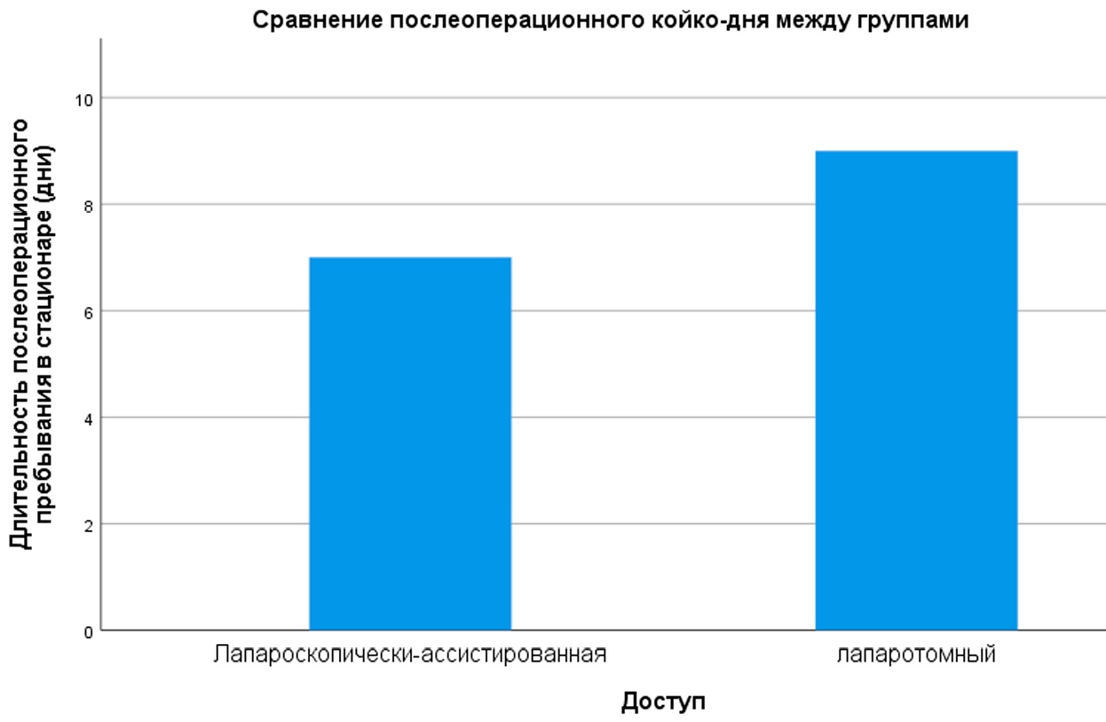 Рисунок 2. Сравнение послеоперационного койко-дня между группами